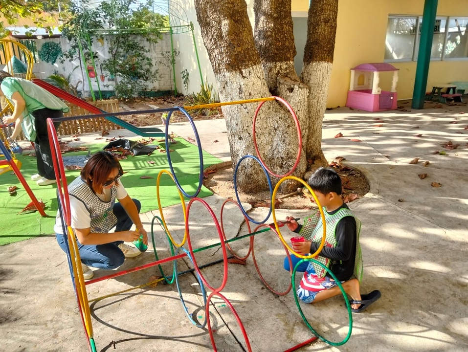 TALLERES COMUNITARIOS: Padres, maestros y alumnos colaboran en proyectos como el mantenimiento de instalaciones, fortaleciendo la unión y el aprendizaje compartido entre generaciones.
